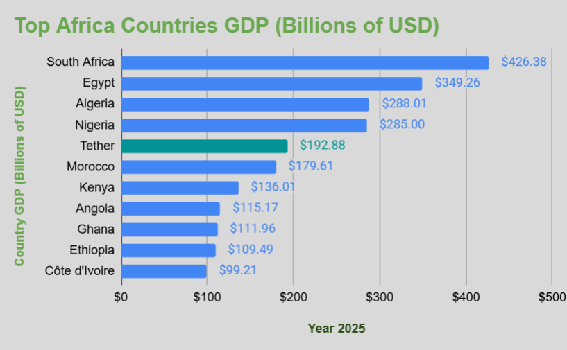 If Tether were an African nation, its total asset base would make it the 5th largest economy on the continent.